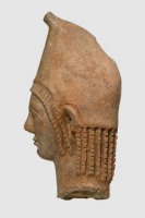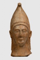 A múzeum Antik Gyűjteménye három jellegzetesen teanumi műfajnak őrzi reprezentatív példányait, kettő közülük az utóbbi évek új szerzeményei közé tartozik. A loretói szentély anyagából származik a kiállított ifjúfej hegyes sapkában, részletesen kidolgozott hajfürtökkel; a sorozat, amelynek egyik jelentős darabja, a szentélynek még a város alapítása előtti korszakában készült, a budapesti fej még a Kr.e. 5. században. Az ifjúfejeket nem tudjuk istenalakhoz kötni, de kizárólag a loretói szentélyben kerültek elő, így bizonyos, hogy számos további nagyméretű terrakotta-szoborral együtt helyi műhelyben készültek.