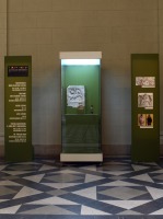 A vadászó lovas alakja a leggyakrabban a mai Bulgária területén és környékén, vagyis az ókori thrákok népének lakóhelyén talált kisebb-nagyobb méretű domborműveken jelenik meg. A konvencionálisan "thrák lovasisten"-ként említett ábrázolásnak több ezer, túlnyomórészt a Kr.u. 2-3. században készült példánya került elő fogadalmi és sírtáblákon; az utóbbiak egyike a tárlóban látható, alatta a halott és a sírtáblát állító apja nevét tartalmazó görög felirattal. A fogadalmi táblák nagy részén különböző görög és thrák istennevek vagy egyszerűen a "hérós" szó olvasható, nyilvánvalóan a halottat vadászó lovasként héróizáló görög ábrázolások nyomán, a "lovas hérós" helyét a thrák vallásban azonban eddig nem sikerült pontosan megállapítani.